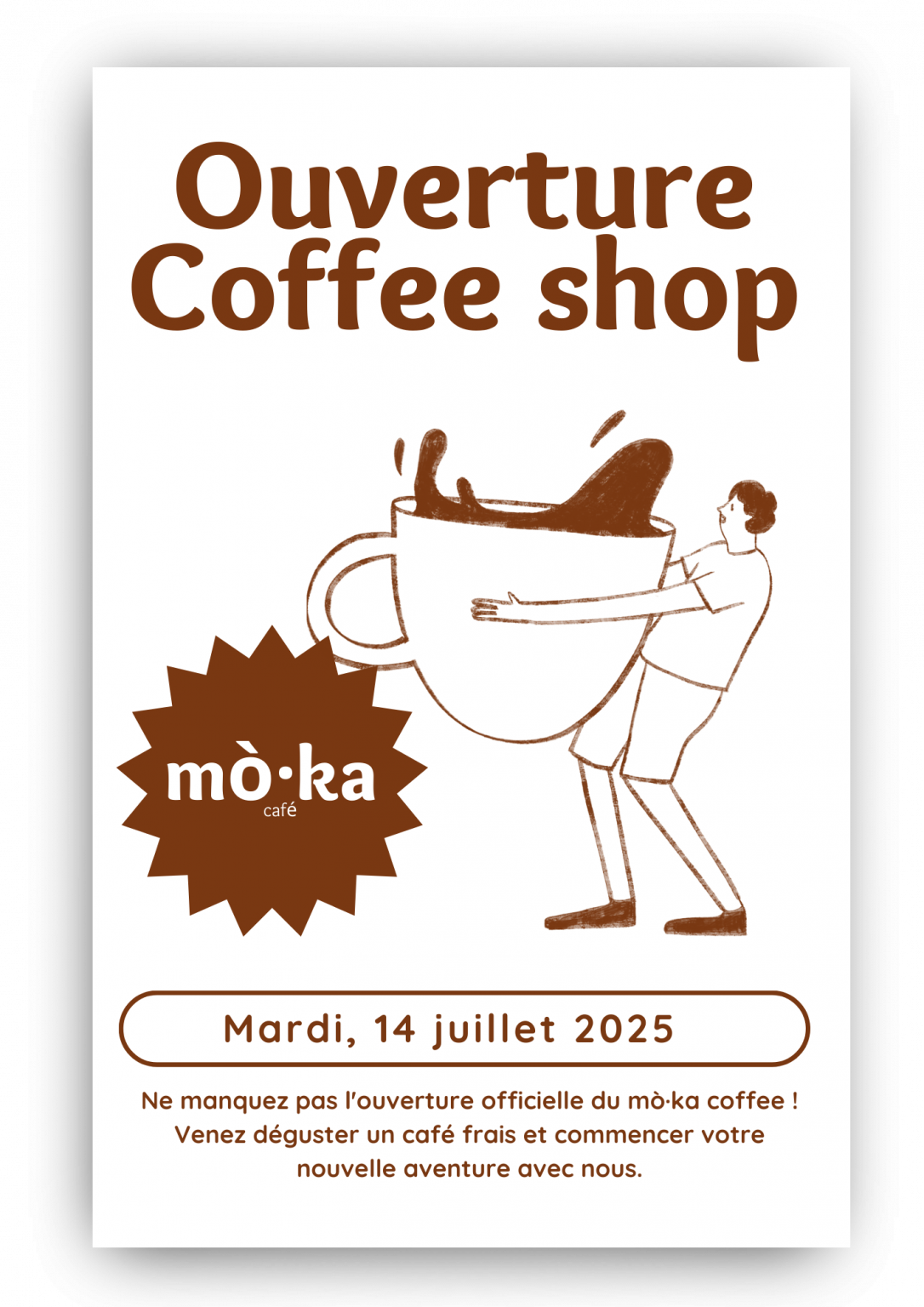 Pour renforcer la cohérence de l’identité visuelle de Mò-ka au-delà du digital, nous avons conçu des supports de communication offline épurée et moderne, reprenant les codes couleurs marron et blanc de la charte graphique.
