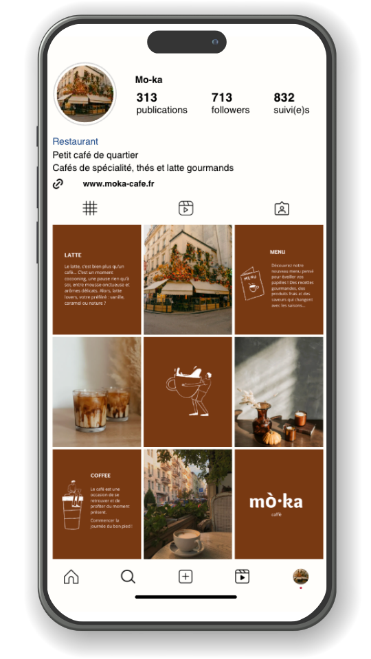 Malgré un concept attractif, Mò-ka manquait d’une identité visuelle claire sur Instagram. La marque peinait à capter l’attention de sa cible et à générer de l’engagement, faute d’une communication visuelle structure et impactante.