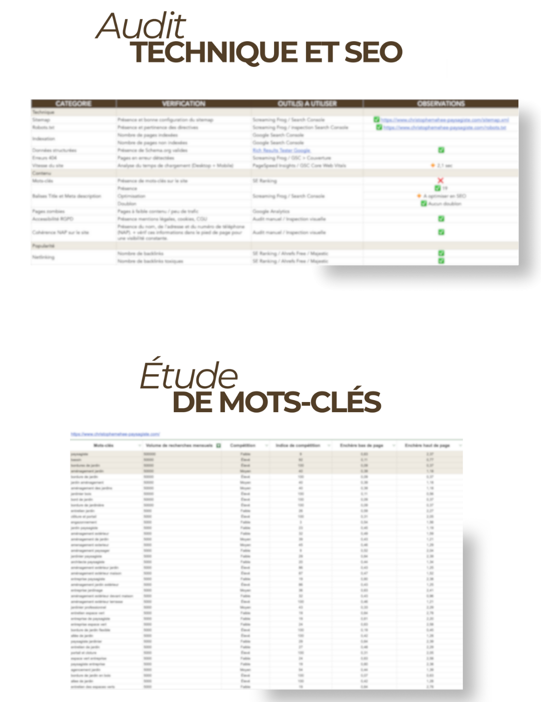- une étude de mots-clés ciblée, en lien avec les prestations du client,